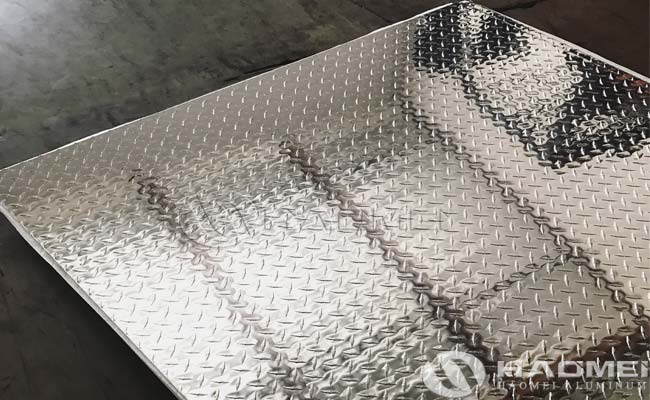Find a reliable diamond tread aluminum supplier can help you to buy high quality product and reduce purchase cost. Haomei Aluminum is a member of diamond aluminum plate supplier in China who manufacture and export aluminum tread plate for more than 20 years. One bar pattern aluminum plate can also be called diamond aluminum plate. The thickness of the aluminum diamond tread plate produced by Haomei Aluminum is 0.8-10mm, the aluminum plate alloy is 10000, 3000, 5000, 6000 series, and the hot-selling aluminum tread plate is 1100, 1050, 1060, 3003, 5052, 6061, etc. The tread aluminum plate are applied to stairs, cold storage compartments. Performance characteristics of Haomei diamond aluminum plate are high gloss, good elongation and tensile strength, good formability, weldability, corrosion resistance, and a wide range of uses.